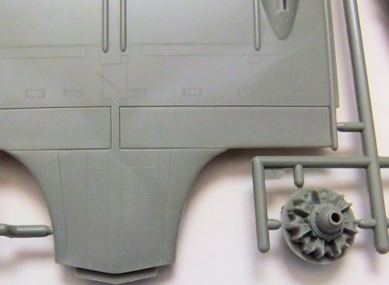 Die beiden Pratt&Whitney Sternmotore sind nur als Relief gefertigt. Der Bausatz verfügt auch über die variantengerechten Propeller mit der auffälligen Paddelform. Die Motorverkleidungen selbst sind dem Typ entsprechend stimmig.