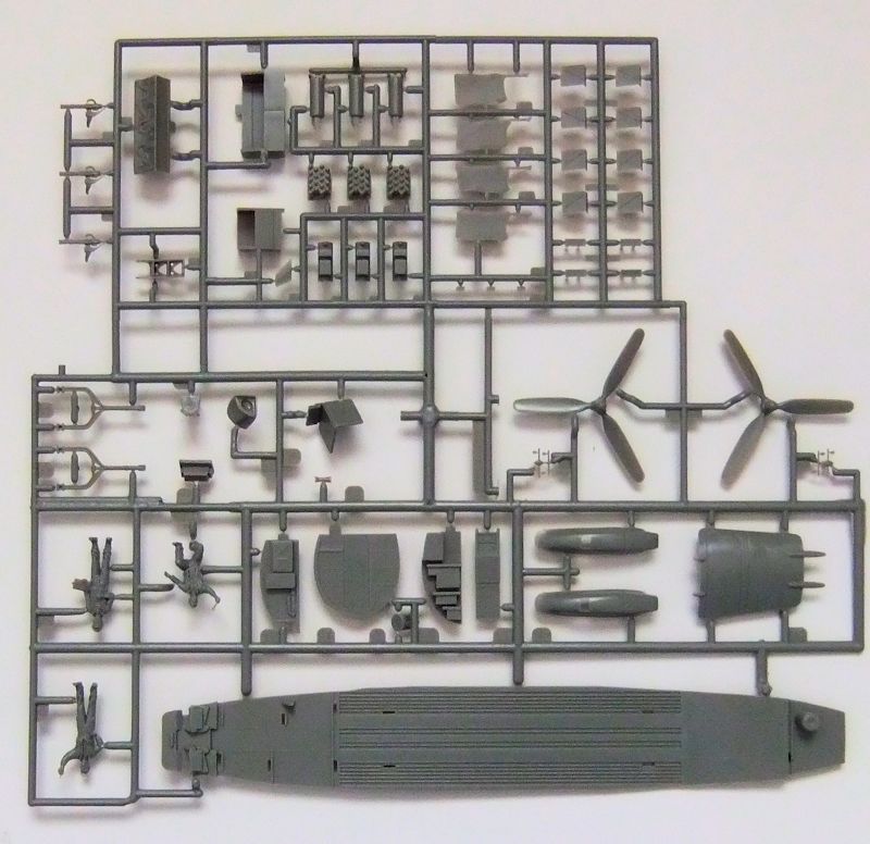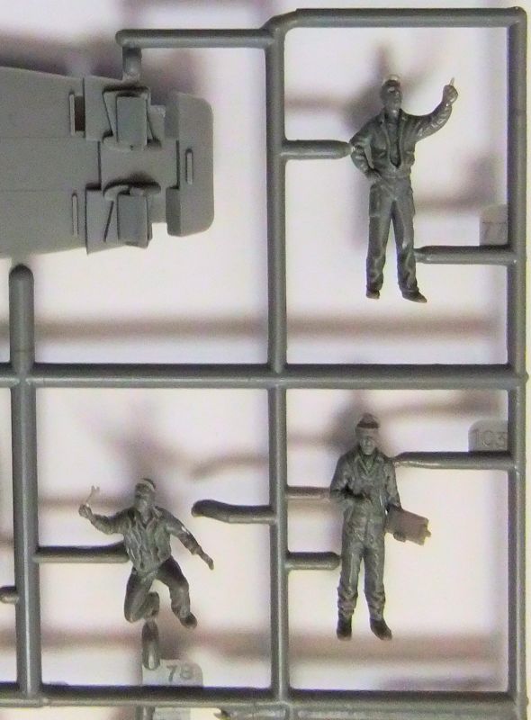 Allerdings sollte man sich über die Antennenanlagen einer AC-47D z.B. übers Internet informieren. Die beiden Antennen links und rechts unter dem Cockpit waren am Original nicht vorhanden. Stattdessen waren oben Peitschenantennen angebracht. An dem Bug sollte eine kleine Rundantenne ergänzt werden. Die drei Figuren sind schön gemacht. Aber der Pilot ist mit seiner Uniform über die er auch eine Schwimmweste trägt, eher der U.S. Navy zuzuordnen.