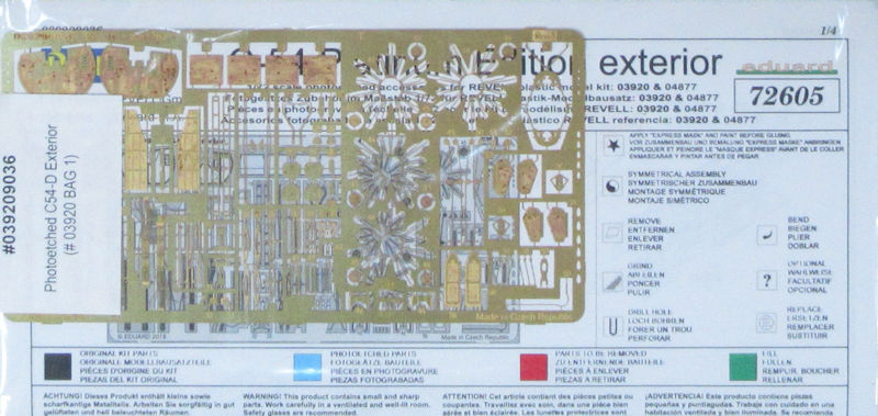 Der Decalbogen ist tadellos gedruckt. Die Farbangaben sind für das eigene Revell-Farbsystem. Allerdings gibt es nur eine Bemalungsvariante. Leider geht die Revell-Bauanleitung nicht auf die Fotoätzteile ein sondern man muss auf die mitgelieferten Bilder von eduard zurückgreifen.