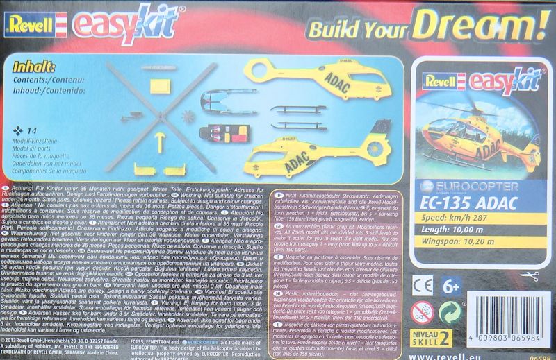 Bausatz: Für den Tag des Modellbaus 2014 gibt es den im Vorjahr erschienenen Easy Kit der EC-135 in den Farben des ADAC im Maßstab 1/72.
