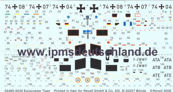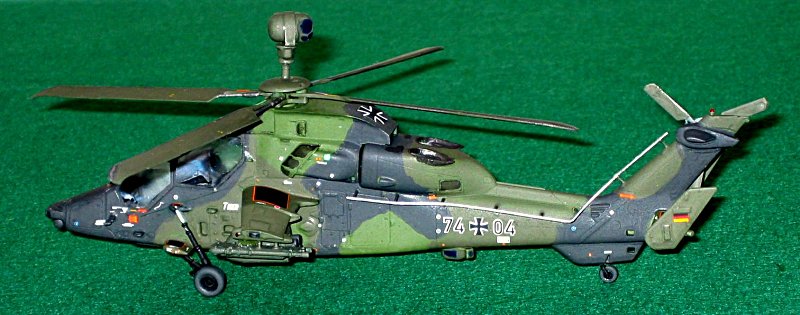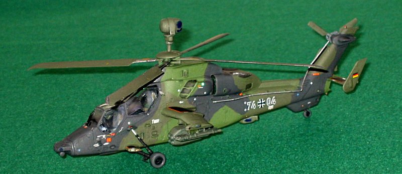 Vorbild: Die Entwicklung dieses Hubschraubers begann schon Ende der siebziger / Anfang der achtziger Jahre. Nachdem es um Konzeptionen und Kosten einen gewissen Streit gab, schlief das Programm fast ein. Nachdem man sich Anfang der neunziger Jahre auf zwei Versionen geeinigt hatte, ging es bei den später vereinten Partnern (MBB und Aerospitiale) erst richtig los. Die französische HAP- Version soll dem Begleitschutz und der Luftunterstützung dienen und der UHT ein bewaffneter Mehrzweckhubschrauber sein. Ab April 2005 erhielten die deutschen Heeresflieger ihre TIGER UHT und die Franzosen bekamen den TIGER HAP im Mai 2006. Eingesetzt wurden die ersten Exemplare in der französisch-deutschen Pilotenschule. Der Auftragsbestand bei Eurocopter liegt derzeit bei 204 Exemplaren.