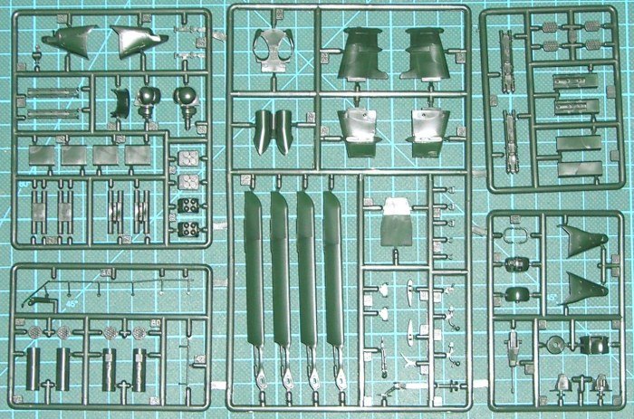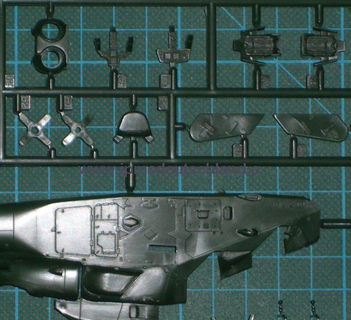 Bausatz: Nachdem ich Mitte Oktober (06) den ersten Shot erhielt, gibt es Anfang Dezember schon die Produktionsversion des Baukasten. Entgegen manchen Unkenrufen sind beide Versionen im Bausatz enthalten. Die Kunststoffteile sind jetzt grün abgespritzt und die Kanzel ist natürlich glasklar (sowie separat in Folie verpackt). Wie Steffen schon zum ersten Shot schrieb: Die Detaillierung ist hervorragend! Das wäre mal wieder ein Projekt zum „aus der Kiste bauen“ (oob). Nicht nur das Cockpit sieht gut aus. Die Gurte sind aufgeprägt und für die Instrumente gibt es Decals.