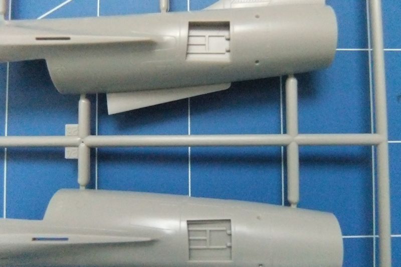 Das Cockpit wirkt sehr schlicht, so wie auch der Schleudersitz. Details bringen aber die guten Decals für diesen Bereich und die Kabine ist auch nur geschlossen anzubringen. Leider ist die Haube aber etwas zu flach geraten. Richtig dagegen ist die hintere Aufteilung des Rumpfes. Die F-104G hatte ein größeres Seitenleitwerk als die amerikanischen Abfangjäger-Varianten. Die Luftbremsklappen lassen sich geöffnet darstellen. wohl fertigungsbedingt ist das gespreizte Hauptfahrwerk zusammen mit den Einzugsstangen in einem Stück ausgeformt. Mittels einer speziellen Maltechnik lässt sich aber die Illusion eines Zwischenraumes bei diesem Teil bewerkstelligen.