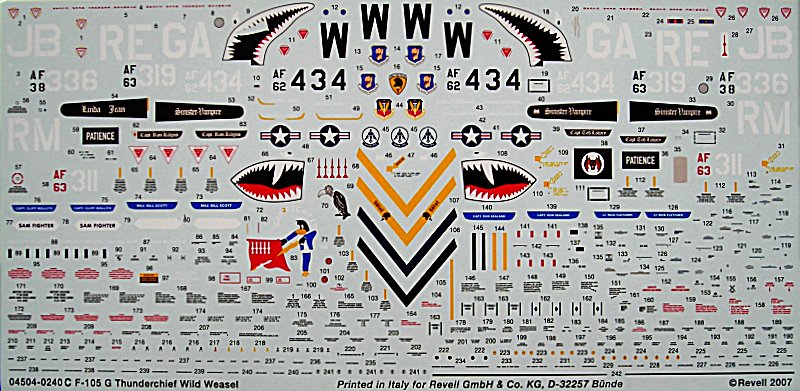 Fazit: So langsam könnte mal eine neue Quarterscale F-105 auf dem Markt erscheinen. Bis dahin ist der Revell Bausatz die einzige Möglichkeit zu einer Thunderchief im Maßstab 1/48 zu kommen. Revells Wiederauflage ist insbesondere wegen des guten Decalbogens willkommen und zu empfehlen.