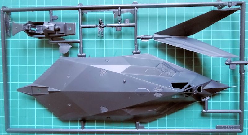 Vorbild: Die F-117A entstand Ende der 1970er Jahre in den USA unter extremer Geheimhaltung als Jagdbomber. Die extrem schwache Radarsignatur sollte ihn befähigen, unsichtbar für den Gegner, wie unter einer Tarnkappe, seine Angriffe zu fliegen. Die ersten Versuchsmuster erhielt die USAF 1982. Der erste Kampfeinsatz erfolgte bei der Invasion Panamas 1989. Im Golfkrieg 1991 waren die F-117 als Medienstar omnipräsent. Die erste F-117A verlor die USAF durch die serbische Luftabwehr während des Balkankrieges.