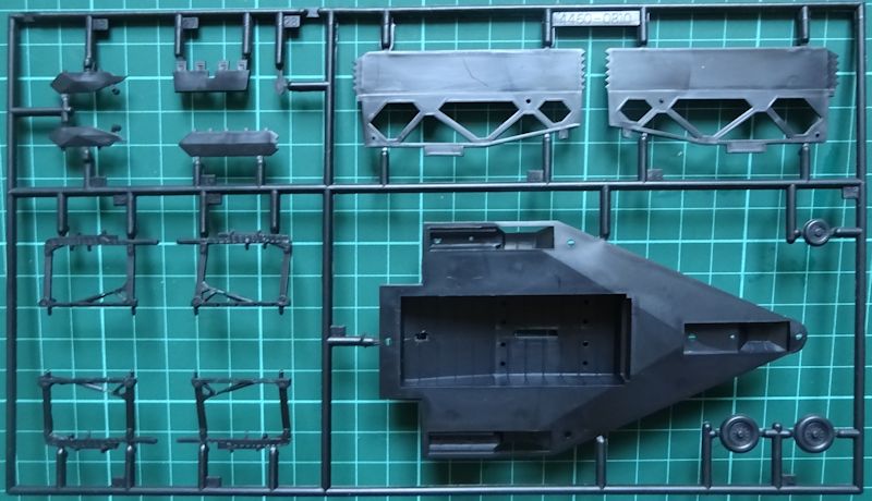Bausatz: Die Wiederauflage basiert auf einer Form von Anfang der 1990er Jahre. Daher dürfte das Modell in seinen Abmessungen dem Original sehr nahe kommen. An sechs sauber abgespritzten schwarzen Gussästen finden sich 36 Teile. Dazu kommt ein Glasteil für die Kabine. Die Bauanleitung führt in 20 Schritten zum Ziel.