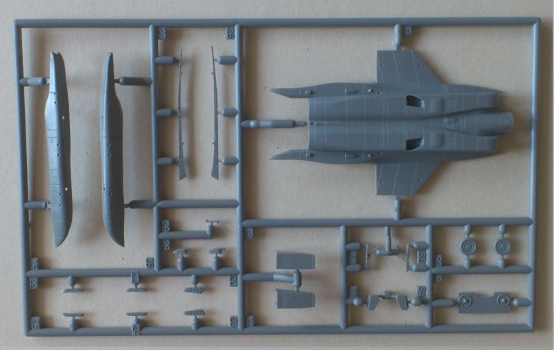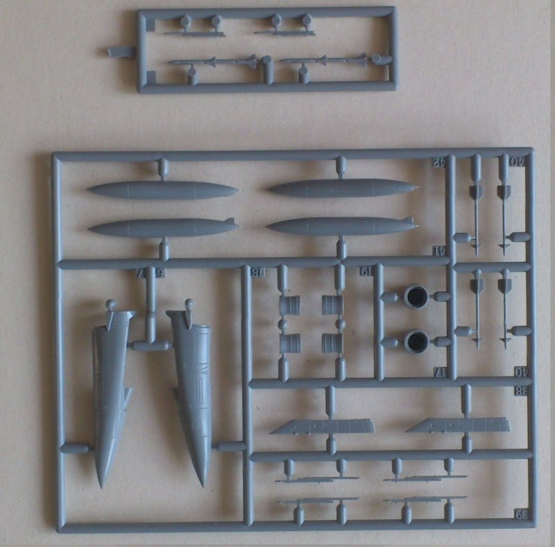 Der Teile: Die Teile sind hervorragend gespritzt und mit superfeinen Gravuren überzogen, die ihres Gleichen suchen. Für einen kleinen 1/144 Flieger mit unheimlich vielen Details und Teilen (62 insgesamt) versehen, dabei sind die Teile so gearbeitet, das Hinterkanten der Flügel und Leitwerke rasiermesserscharf sind. Auch das Cockpit ist ein Highlight. Mehr geht fast nicht in diesem Maßstab.