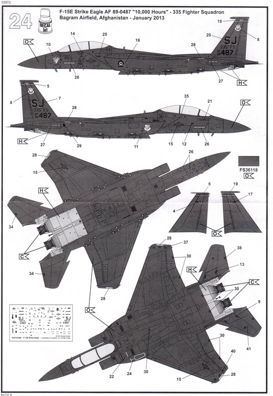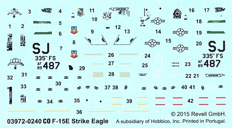 Die Bau- und Bemalungsanleitung ist wie immer klar und verständlich angelegt; gut finde ich, dass die Bemalungen der Außenlasten separat gezeigt werden. Nur bei den Stufen 21 und 22, wo es um die Verteilung der Außenlasten geht, hat man Fehler gemacht, da die schwere GBU-10 nicht an einen CFT-Träger kommen kann, während die GBU-15 nur an die mittlere Station der Flügelpylonen kommt. Interessanterweise zeigt das Kartonbild es richtig! Für die zahllosen Optionen der Bewaffnung und die Verteilung lohnt sich ein Blick auf www.f-15E.info.