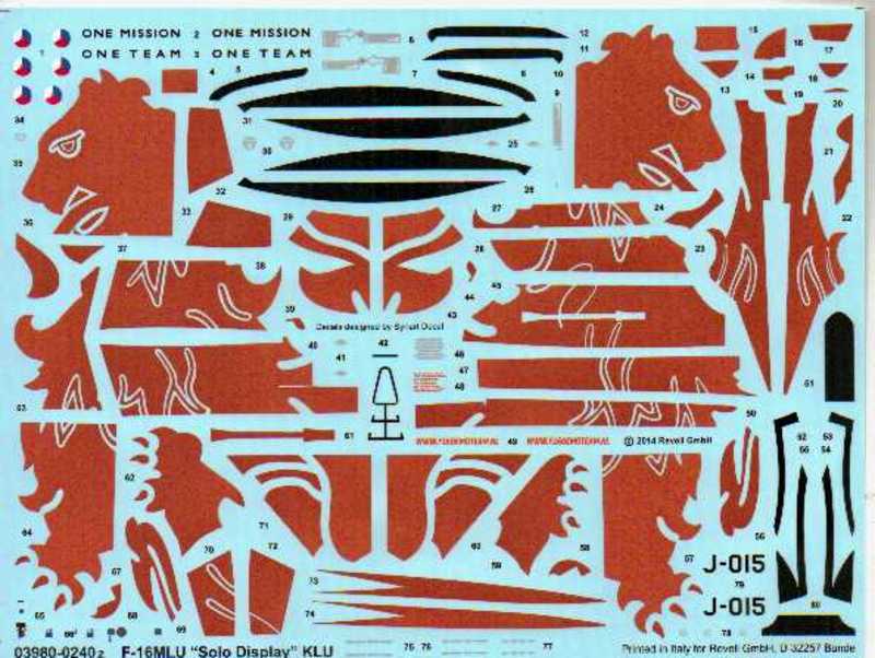 Bausatz: Revell folgt seinem Produktionsschema von 2000 und legt für die F-16A ausschließlich Vorbilder mit Sonderanstrichen vor. Der Bausatz ist in den Grundzügen (drei hellgraue Gussäste und ein Klarsichtteil) bekannt und unterscheidet sich nur durch das Fehlen der versionenspezifischen Teile. Die F-16 ist sehr gut getroffen reproduziert - bis auf die leicht misslungene Nozzle und den Lufteinlauf. Diesen kann man in Eigeninitiative ändern, für den separat montierbaren Triebwerksauslass gibt es Zurüstsets.