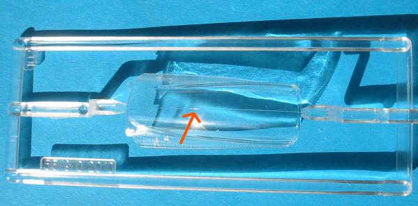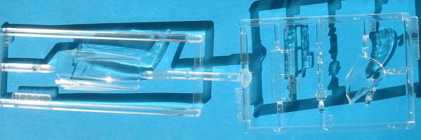 Die Formtrennnaht in der Cockpithaube (Pfeil) muss auspoliert werden!