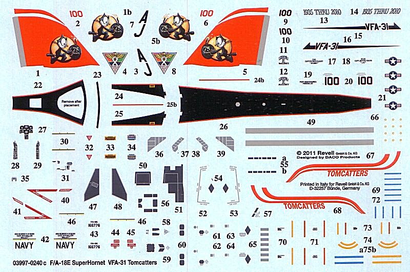 Die Decals: Eine "Tomcatters" Sonderbemalung der US Navy wird mit umfangreichen Details kann dargestellt werden. Design von DACO und gedruckt in Italien, die bekannt gute Kombo.