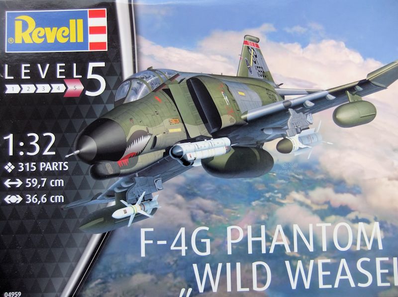 Bausatz: Es ist keine wirkliche Neuheit. Dem bekannten F-4F/F-4E Phantom Modell von 1994 wurden alle Teile für den Zusammenbau einer "Wild Weasel" Phantom F-4G beigelegt. Diese Modellvariante erschien erstmals 2015 in den USA. Alle neuen Teile stammen aus heutigem Formenbau.