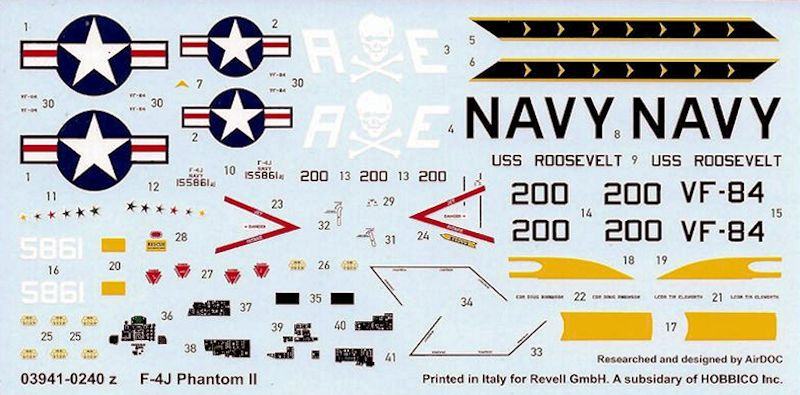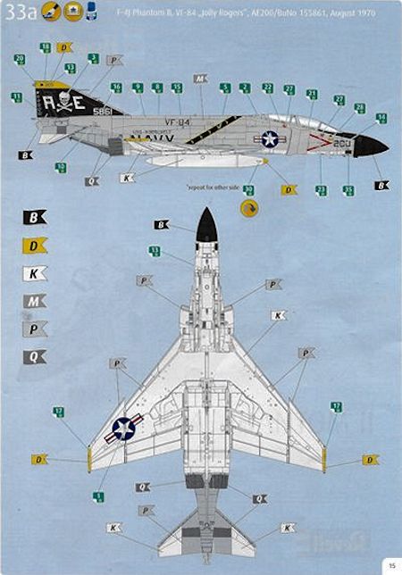 Bemalungsvarianten: Der neuen Philosophie folgend gibt es nur eine Decomöglichkeit. Mit den sauber gedruckten Abziehbildern kann man eine Maschine der VF-84 "Jolly Rogers" gestalten. Farbangaben erfolgen in hauseigenen Farben.