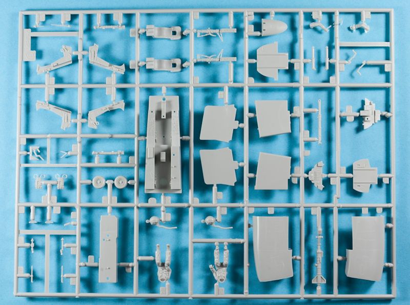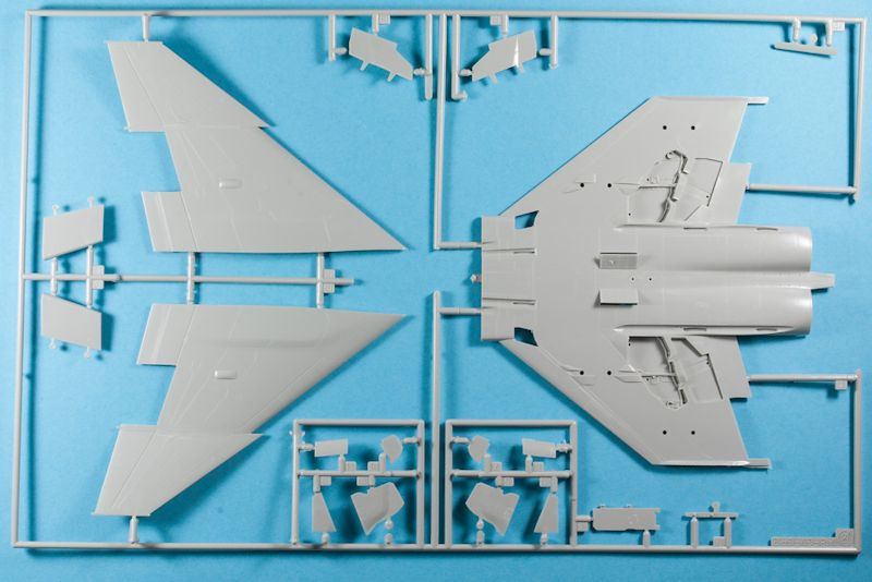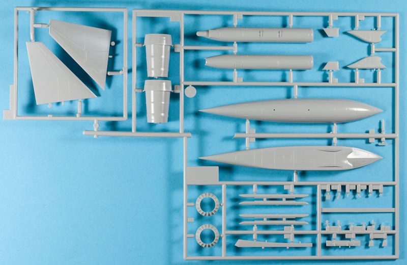 Trotz seines Alters schlägt sich der Bausatz wacker, was die Detaillierung angeht. Die Gravuren sind versenkt. Die Cockpitdetaillierung ist auch heute noch ansehnlich. Die für die FGR. 2 geänderten Teile sind über die Spritzlinge verteilt. Ab und an zeugt ein wenig Flash vom Alter der Form.