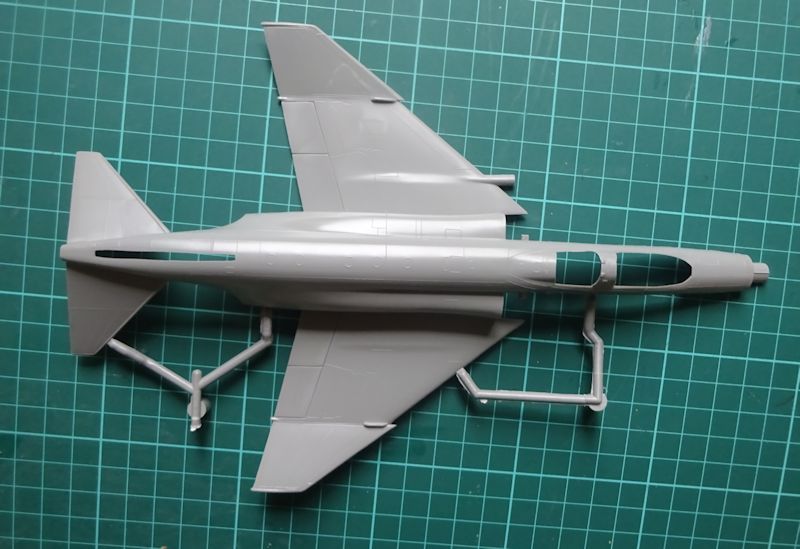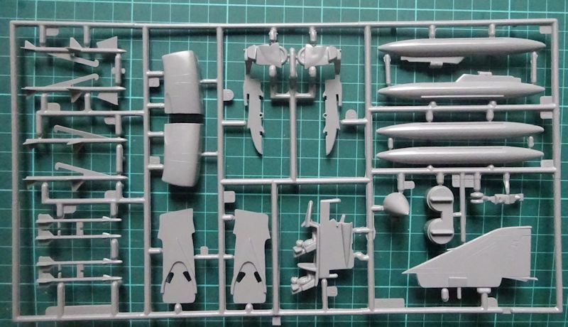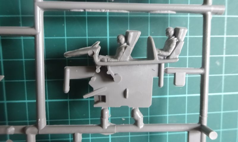 Die anderen 21 Teile liefert ein grauer Spritzling. Cockpiteinrichtung und Bugfahrwerk bilden eine Einheit.