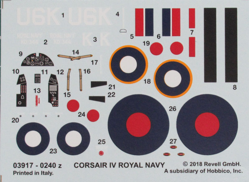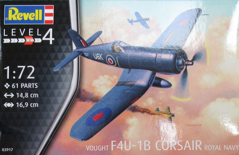 Bausatz: 2014 erschien die erste Variante der neuen Vought F4U Corsair in 1/72 bei Revell. Inzwischen gibt es die dritte Variante des Grundbausatzes. Hierfür hat man sich die F4U-1B die bei der Royal Navy Corsair Mk. II hieß herausgesucht. Leider findet man letztere Bezeichnung nicht im oder auf dem Bausatz.