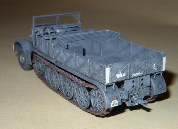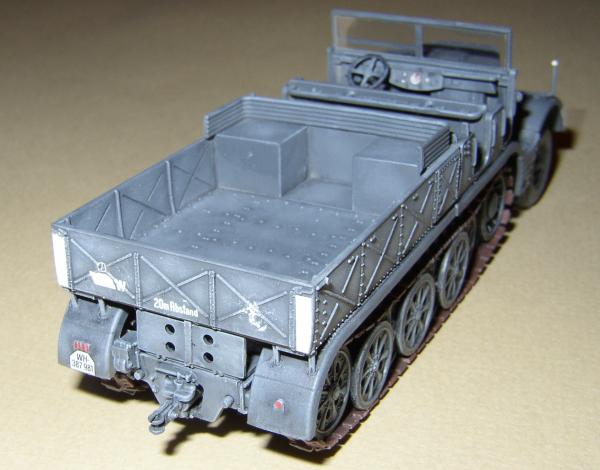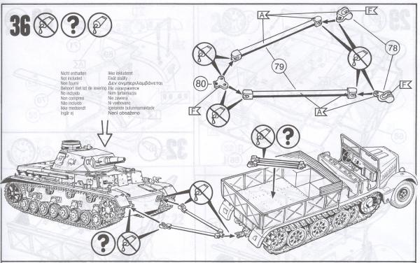 Zum Bausatz: Ein supertolles Modell mit sehr vielen Details und sehr sauberer Verarbeitung, was sich leicht bauen lässt. Ich muss sagen, dass ich mich nicht mehr ein bekomme vor lauter Begeisterung und was sich vor Möglichkeiten zum Umbauen auftun. Das Fehlen einer Abdeckplane für die Ladefläche wird entschädigt durch ein Schleppgeschirr für PzKpfWg III / IV (hier im Bild in der Bauanleitung mit PzKpfWg IV Ausf. E - hat da Revell was Feines für 2005 in der Hinterhand - schön wär's) und "versehentlich" beigelegten Erdsporn. Schön, schön!