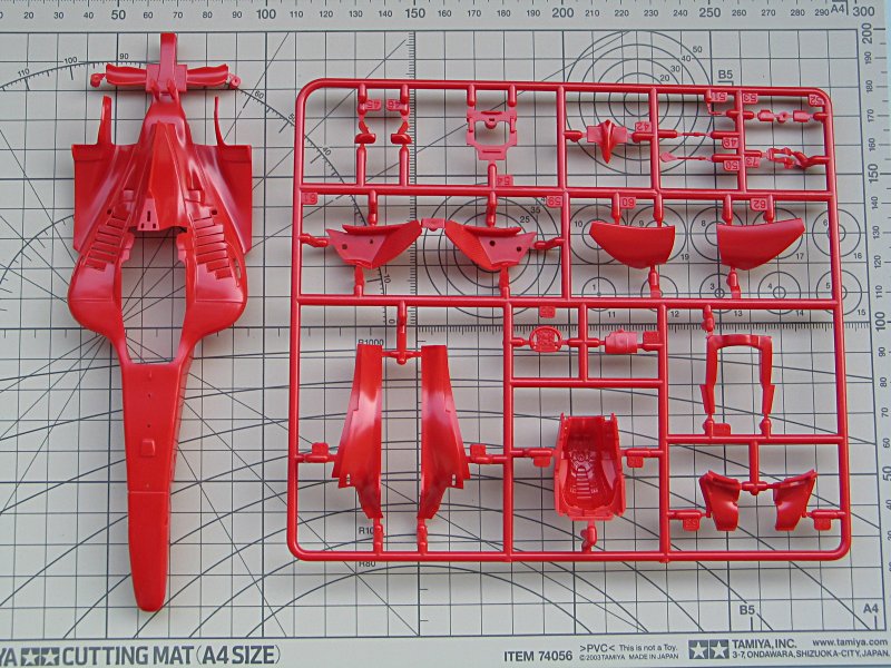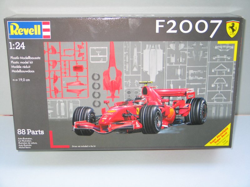 Mit dem Modell des F 2007 ist Revell ein guter Wurf gelungen. 88 Teile befinden auf 6 Gussästen verteilt. Die Karosserie ist im einen Stück gegossen. Alle Teile sind ausreichend Detailliert. Der Motor ist gut gelungen, aber leider nach dem Zusammenbau leider nicht mehr sichtbar. Weil die Karosserie mit den Unterboden verklebt wird. Front und Heckflügel sind gut wiedergegeben. Im Cockpit sind die Sicherheitsgurte schon Aufgeprägt worden und müssen lackiert und mit Decals beklebt werden. Die Radaufhängungen sind gut wiedergegeben. Leider können die Vorderräder nicht schwenkbar gebaut werden.