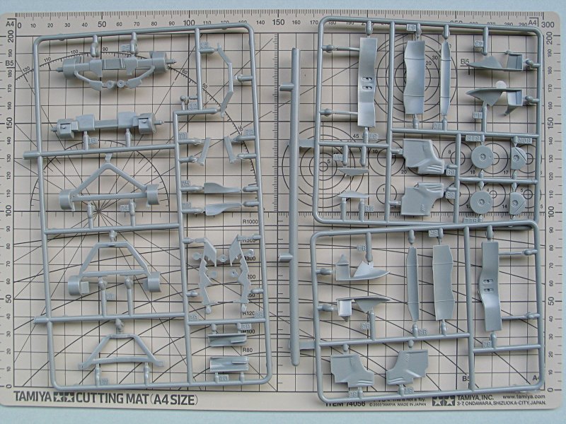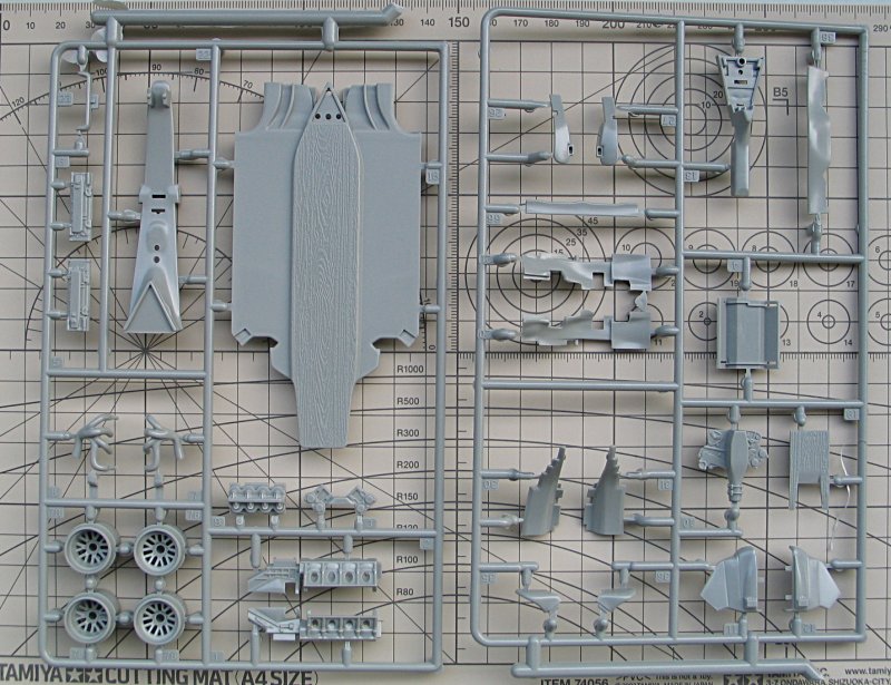 Die Reifen sind aus gewohnten Gummimaterial gefertigt. Revell hat auch an die von Ferrari eingeführten Radkappen gedacht. Diese werden auf die Felgen montiert und beeinflussen beim Original den Luftfluss (Aerodynamik) die Luft wird seitlich an den Rädern vorbei geleitet und kann sich nicht mehr in den Felgen verfangen. Von den anderen Teams bei der FIA als nicht regelkonform kritisiert und doch schon bald kopiert.