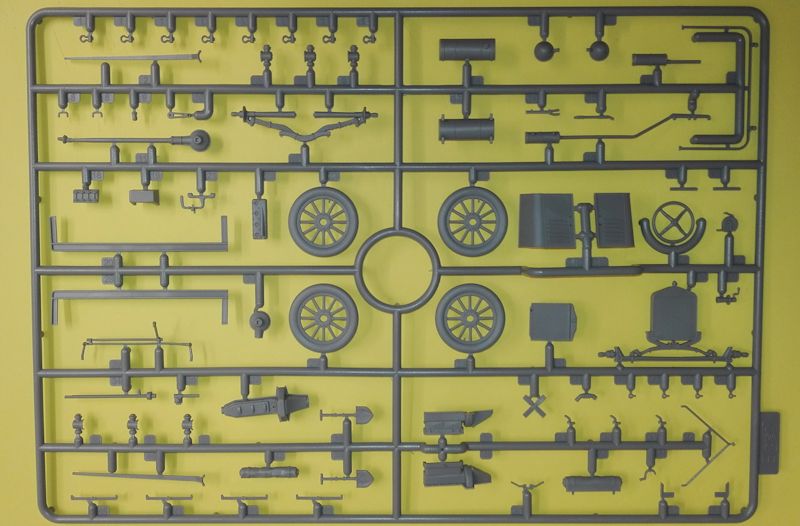 Bausatz: Als ich den Bausatz in den Händen hielt, war ich gespannt, was mich erwartet. Revell hat ja extra NEW auf den üblichen Schüttkarton gedruckt. Aber mein Verdacht bestätigte sich: Es handelt sich um den ICM-Bausatz von 2016. Auf zwei grauen, und einem klaren Spritzling finden sich 118 Einzelteile in ausreichend detaillierter Qualität.