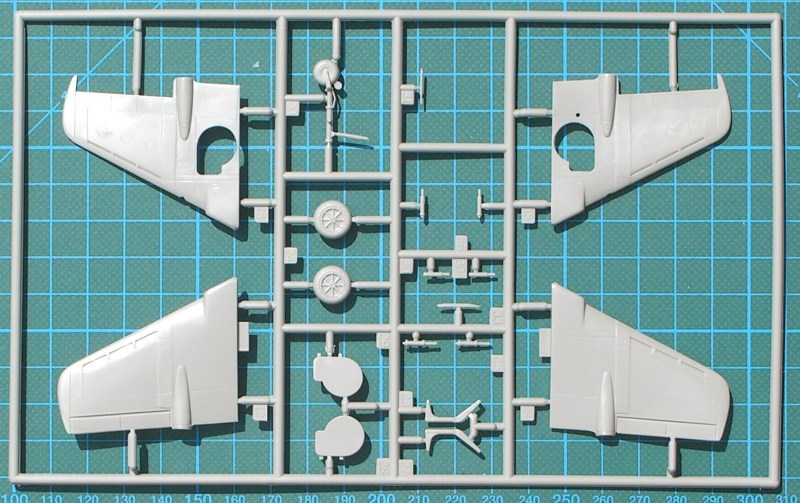 Die Spritzgussteile besitzen sehr feine Details. Die Kanzel ist einteilig und relativ dick und kann nur geschlossen montiert werden. Das kommt ganz gelegen, denn das Cockpit ist recht rustikal. Ansonsten die die Konstruktion des Bausatzes sehr durchdacht und die Bauanleitung ist sehr übersichtlich. Es wird auch auf ein Buggewicht hingewiesen. Der Abziehbilderbogen (Decals) ist sehr umfangreich und tadellos gedruckt.