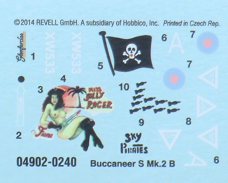 Vorbild: Bei Blackburn entstand ab Mitte der 50er Jahre ein Tiefangriffsflugzeug für die Royal Navy. Der erste Prototyp des damals NA.39 genannten Flugzeugs flog am 26. August 1958 erstmals. 18 weitere Flugzeuge wurden in den nächsten Jahren getestet. Ab Januar 1960 begannen die Flugversuche von Bord der HMS Victorious aus. Ab August 1960 wurde die erste Version als Buccaneer S.Mk. 1 bezeichnet und anschließend die erste Einheit damit aufgestellt. Von 40 S.Mk. 1 gingen 13 Exemplare bis zur Außerdienststellung 1970 verloren. Die folgende S.Mk. 2 erhielt stärkere Rolls Royce Spey-Triebwerke. Äußerlich ist diese Version deutlich an den vergrößerten Triebwerkseinläufen von der vorhergehenden Version zu unterscheiden. Neben zwei Vorserienmaschinen wurden 84 Buccaneer S.Mk. 2 produziert. 1994 gingen die letzten britischen Buccaneer außer Dienst.
