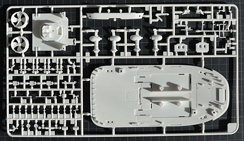 Einzig schade finde ich die Aufteilung des Rumpfes. Wenn man das Modell auf Wasserlinie bauen möchte, hat man viel Schneidarbeit vor sich.