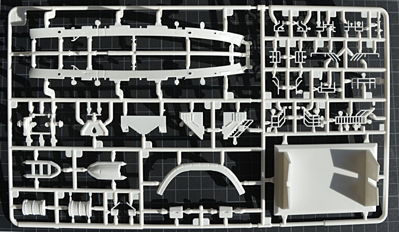 Die Teile: Die Teile sind in heute üblicher Revellqualität im Spritzgussverfahren in weißem Plastik gegossen. Sie haben feine Details und Strukturen. Zahlreiche Klarsichtteile ergänzen den Bausatz.