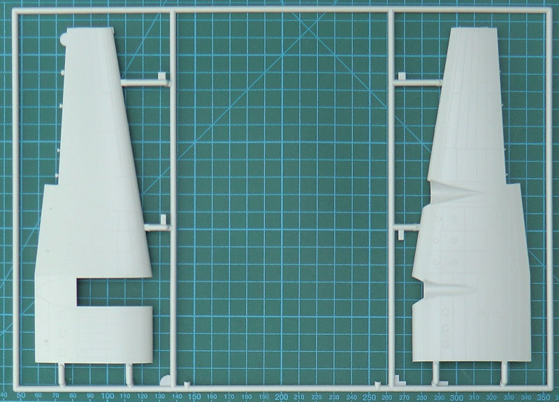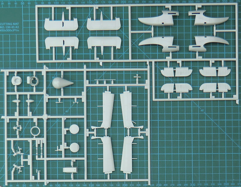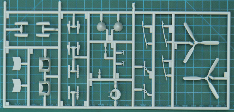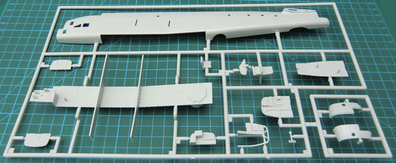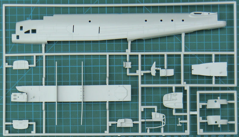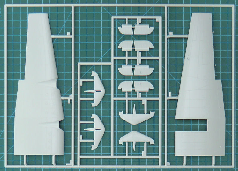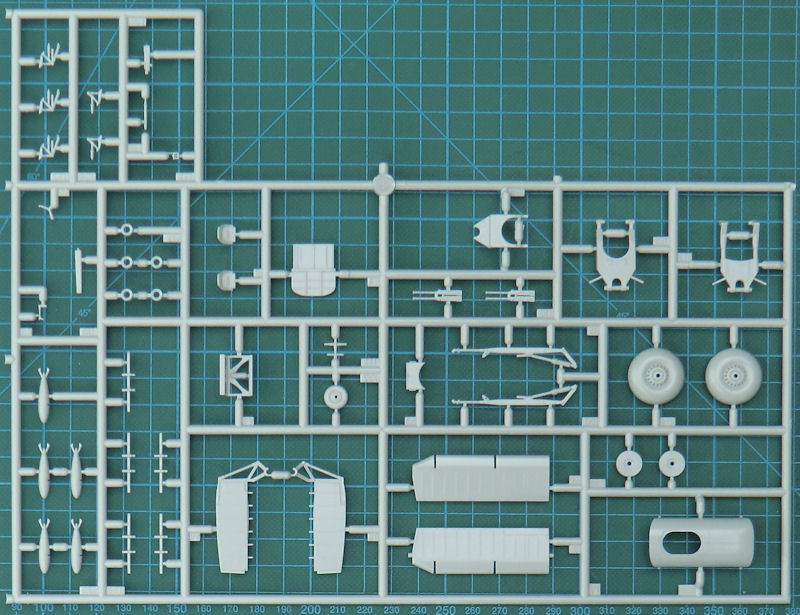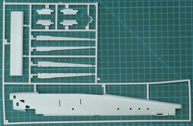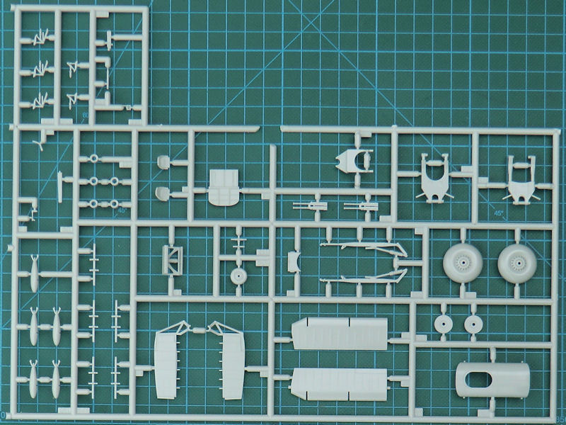 Die Tragflächenenden gibt es separat. Revell liefert auch Klarsichtteile für die Positionsleuchte mit. Quer-, Höhen- und Seitenruder sind nach der Montage noch beweglich. Entsprechend des Originals gibt es auch unterschiedliche Seitenleitwerke. Das Fahrwerk ist sehr detailgetreu wiedergegeben. Der Bombenschacht kann alternativ offen gebaut werden. Dann kann er auch mit den Bombennachbildungen bestückt werden. Die Waffenstände sind schon von Haus aus gut gemacht. Sicherlich kann man mit Detailsets hier noch mehr machen. Klar gibt es hier auch Alternativteile.