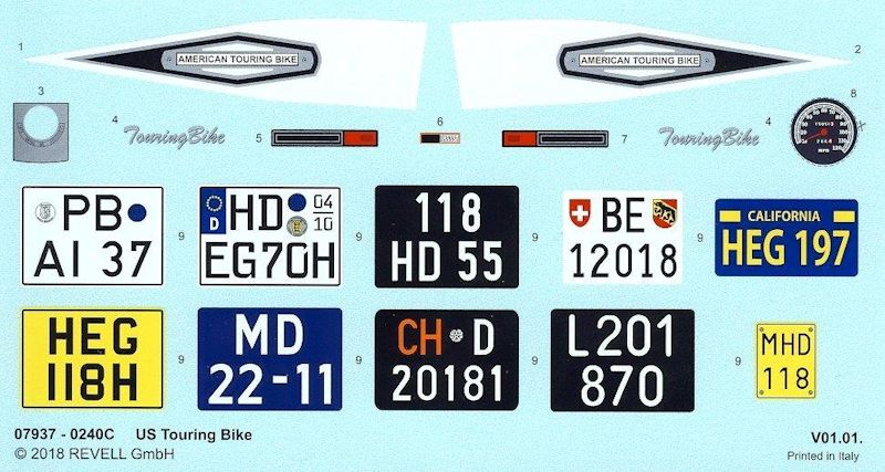 Vorbild: Eigentlich ist das neue Revell Bike eine Harley-Davidson Electra Glide, aus lizenzrechtlichen Gründen erschien es bei Revell aber als "US Touring Bike". Das Unternehmen Harley-Davidson Motor Co. wurde 1903 in Milwaukee, Wisconsin (USA) von William S. "Bill" Harley (1880-1943) und Arthur Davidson (1881-1950) gegründet. Später kamen die Brüder William A. Davidson (1870-1937) und Walter Davidson (1877-1942) hinzu. Die Harley-Davidson Motor Company ist einer der ältesten Motorradhersteller der Welt, der bis heute Motorräder produziert.