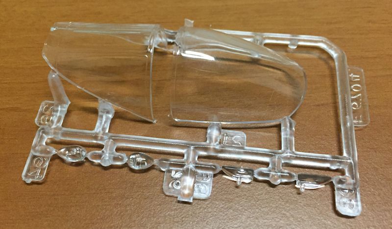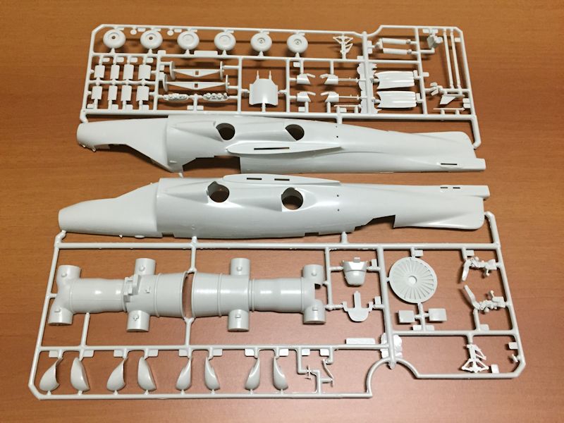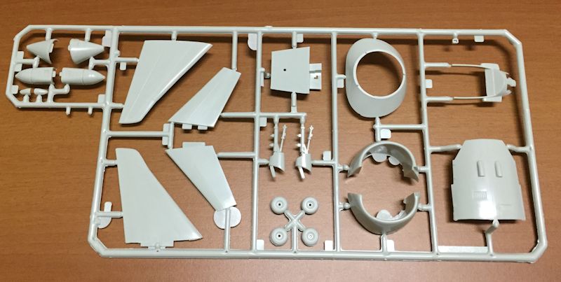 Der Bausatz enthält fünf Spritzlinge, einen mit Klarsichtteilen sowie einen Bogen mit Wasserschiebebildern. An den Klarsichtteilen konnten keine Mängel entdeckt werden.
