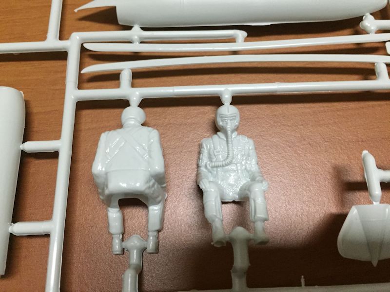 Die Bauteile sind dem Augenschein nach in Ordnung. Es gibt zwar Unreinheiten, aber diese sind doch sehr leicht zu beseitigen. Interessant ist die beigefügte Pilotenfigur. Die Haltung der Figur ist die "einer Gottheit in einem Majatempel". So der Kommentar eines IPMS-Mitglieds.