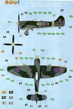 Fazit: Nach einer langen Dürreperiode werden nunmehr Tempests in verschiedensten Maßstäben in die Verkaufsregale geweht. Dies ist ein schöner Bausatz mit einem gerüttelt Maß an Overengeneering. Ich hätte gern eine Motornachbildung gesehen, wie es schon einmal die alten 32er Revells hatten und separate Querruder und Landeklappen wären auch nicht zu verachten gewesen. So ein großes Modell ist erfahrungsgemäß nicht frei von Problemen mit der Passform und dies kombiniert mit der großen Zahl kleiner und kleinster Teile lassen dies einen Kit für Modellbauer mit etwas Erfahrung sein. Schade, dass es nur zwei Decalvarianten gibt, aber der Aftermarket schafft sicher Abhilfe. Insgesamt: Empfehlenswert!