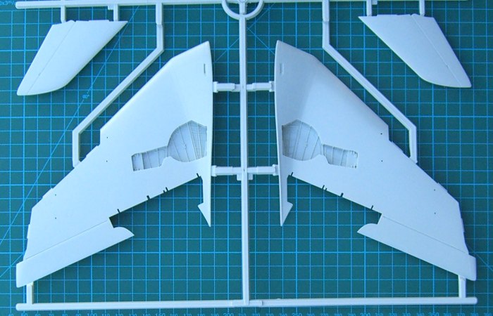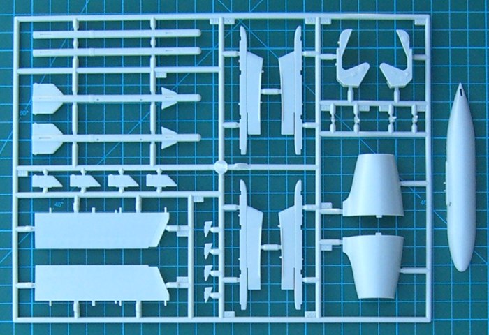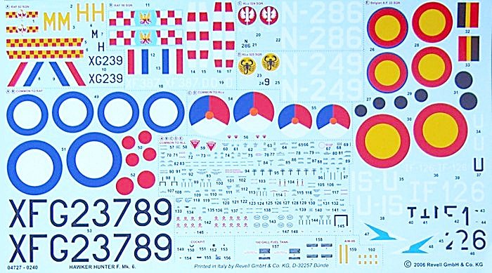 Die hellgrauen Spritzrahmen enthalten eine Menge Teile, die für andere Versionen bestimmt sind. Jetzt liegen alle Bauteile bei, die für die F.Mk. 6 benötigt werden. Der Rumpf ist auch noch mal aufgeteilt, so dass es theoretisch machbar wäre, einen Doppelsitzer herauszubringen. Der Bau des Modells beginnt auch hier mit dem Cockpit. Der Schleudersitz ist sehr gut detailliert und es gibt hier die Alternative zwischen einen Martin-Baker Mk. 3H und einem Mk. 2H. Ich glaube nicht, dass ein Resinsitz viel besser aussieht. Instrumentenbrett und Seitenkonsolen sind gut wiedergegeben. Wer noch mehr möchte, der kann ja noch bei der Zubehörindustrie ein wenig Geld lassen. Genial fand ich schon vor Jahren den Lufteinlauf, der bis zum Triebwerk nachgebildet ist. Es gibt auch noch separate Landeklappen, die auch ausgefahren montiert werden können. Revell hat auch die Gewichtsangabe für das Buggewicht nicht vergessen. Die Lösung für die Flächen-Rumpf-Montage möchte ich als toll bezeichnen. Der Bausatz ist weiter auch ohne Fehl und Tadel. Die Fahrwerksschächte sind sehr detailliert und tief. Das Fahrwerk selbst wird gut rüber gebracht. Für die Tragfläche gibt es leider nur zwei 100 Gallonen Tanks und zwei Sidewinder. Die RAF flog auch gern mit vier Tanks. Der Decalbogen ist für die Bausatzgröße sehr angemessen. Es gibt Wartungshinweise und ein Versatz war nicht zu erkennen.