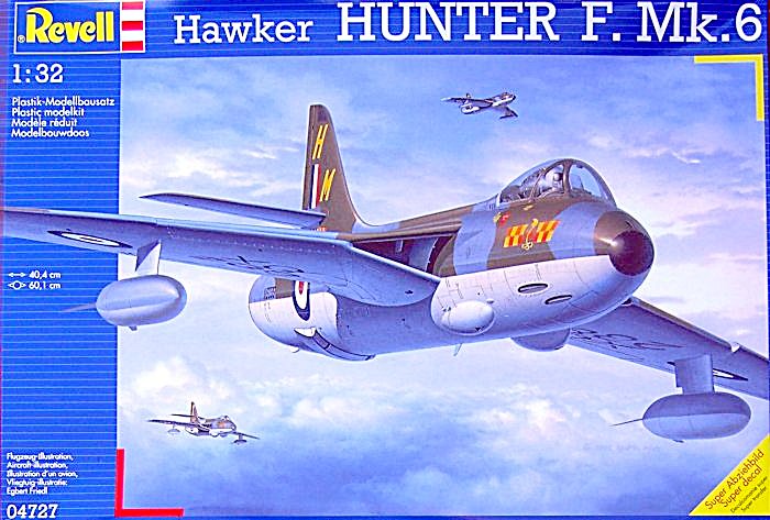 Bausatz: Ein erster Bausatz der Hunter erschien bei Revell in 1:32 schon vor einigen Jahren. Obwohl es sich um ein Wunschmodell handelte, war der wirtschaftliche Erfolg nicht wie erwartet. Vielleicht stellt er sich jetzt ein, denn gigantische 32er Bausätze sind ja voll im Trend.