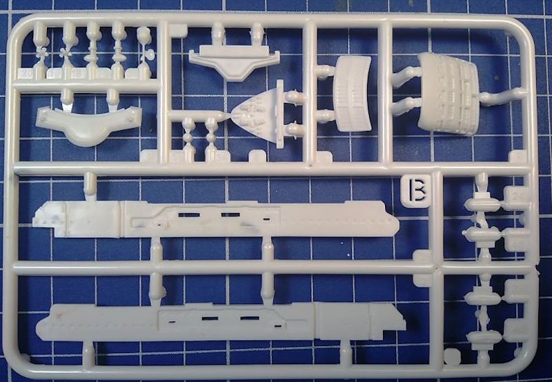 Die beiden Kits bestehen aus jeweils ca. 45 Teilen in weißem Plastik ohne Grate und Sinkstellen. Die Auswerfermarkierungen sind an der Innenseite der Bauteile platziert. Die Angüsse sind im Verhältnis zur Größe mancher Teile sehr dick und reichen bis nahe an die Teile heran, was ein Abtrennen der oft winzigen und teils sehr filigranen Teile ohne Bruch oder Verfütterung an das Teppichmonster fast unmöglich erscheinen lässt.