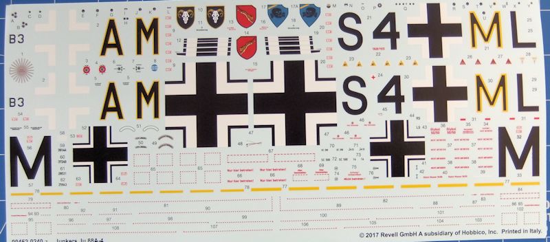 Bemalung: Gebaut werden kann eine Maschine aus dem Jahre 1943 des 4./KG 54 aus Sizilien mit einem sehr attraktiven aber komplizierten Anstrich, oder eine Ju88 A-4 der 3. Küstenfliegergruppe aus Holland 1942 in der Standardtarnung 70/71/65.