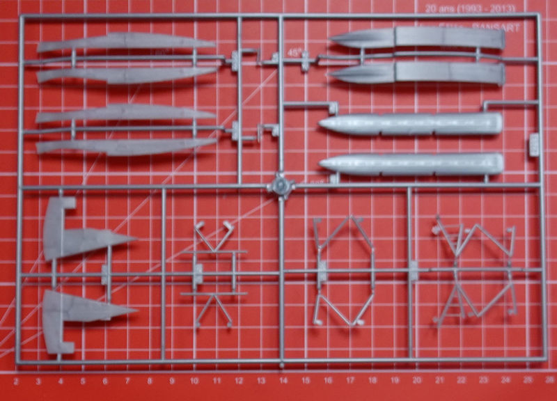 In der attraktiven aber unpraktischen Schüttbox befinden sich gut verpackt drei silberfarbene Spritzlinge mit 68 Spritzlinge, neun Klarsichtteile, ein Decalbogen und die mehrfarbige Bau- und Bemalungsanleitung. Die Abspritzung ist sauber und ohne viel Grat und die Wellblechstruktur ist gut getroffen. Revell liefert auch alle Teile für die Schwimmerausführung mit aber es gibt dafür keine Bemalungsvariante. Hier kann man ja auch ggf. auch auf einen MasterX Umbausatz zurückgreifen.