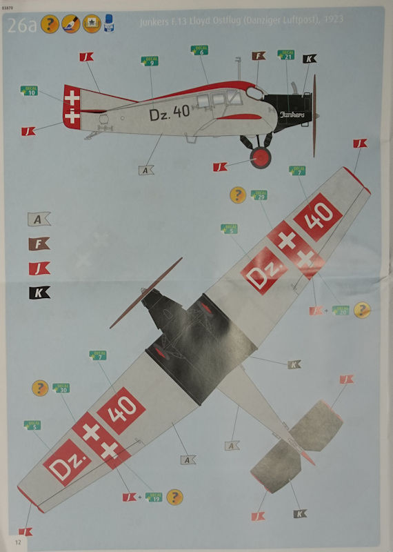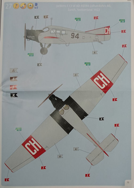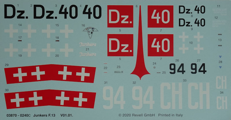 Fazit: Revell hat die Junkers F.13 in 1/72 erneut aufgelegt. Die Bemalungsvarianten sind bekannt. Leider gibt es keine einzige für die Schwimmervariante. Hier hätte ich mir eine andere Decalauswahl gewünscht. Die Maschine aus Danzig ist, wie schon bei FirstLook von 2006, mein Favorit.