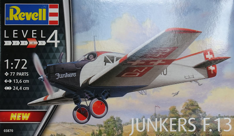 Bausatz: Das Bausatzcover dieses Kit der Junkers F.13 erinnerte mich an die Auflage von 2006 nur mit dem jüngeren Design von Revell. Im Maßstab 1/72 ist es kein Unbekannter. Erstmals erschien er 1992. In den 2000er wurde die Form leicht überarbeitet, denn die Stellung des Höhenleitwerks war nicht ganz korrekt. Inzwischen gibt es auch diverse Umbausätze von MasterX.