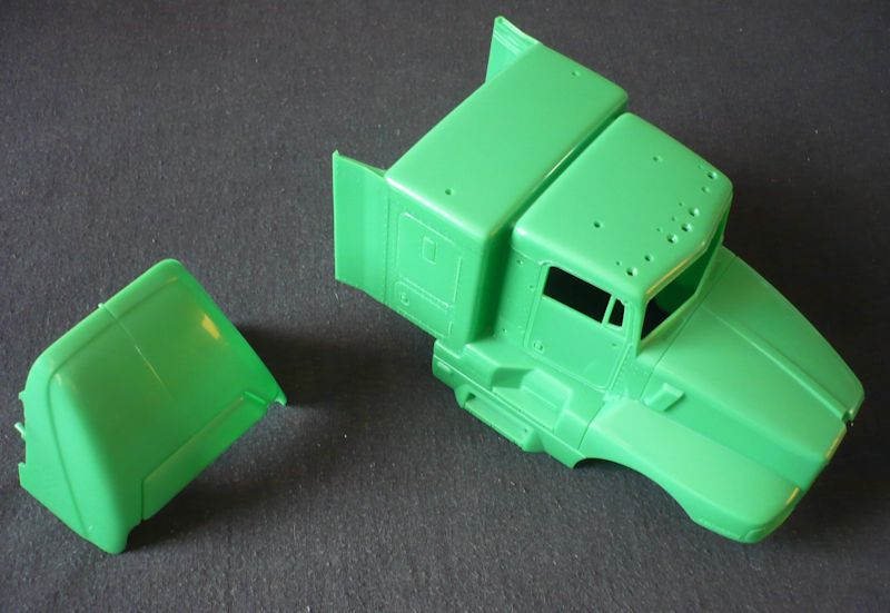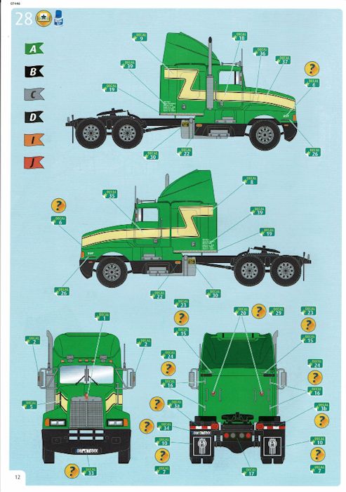 Der Kenworth besitzt eine einteilige Bodengruppe mit angedeutetem Motor und Getriebe. Die Achsteile sind aus einem Stück gefertigt. Die Fahrerkabine ist einteilig. Der Innenraum ist detailliert mit integrierten Sitzen, Schlafkoje und Armaturenbrett. Eine Menge Chromteile darunter Felgen, Kühlergrill und Auspuffanlage zieren das Modell. Die Bereifung des Fahrzeuges ist aus Plastikspritzguss. Der Abziehbilderbogen ist sauber gedruckt und erlaubt den Bau der auf dem Kartondeckel gezeigten Version.
