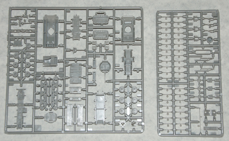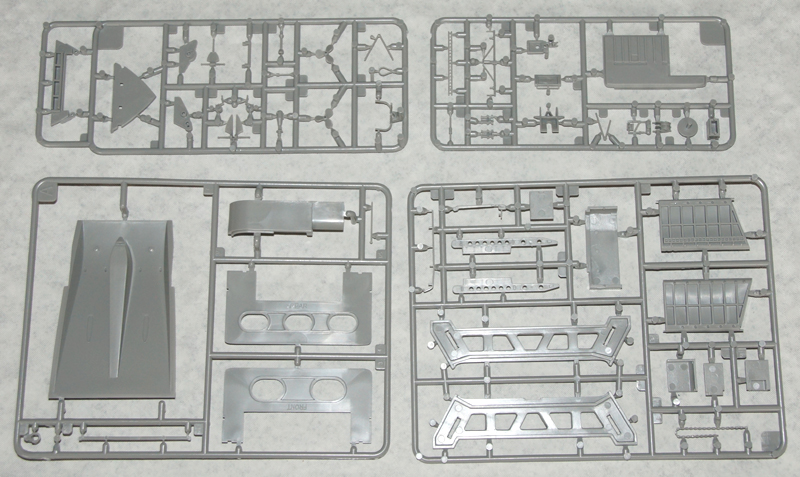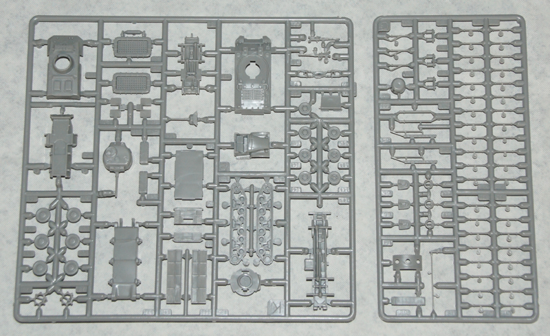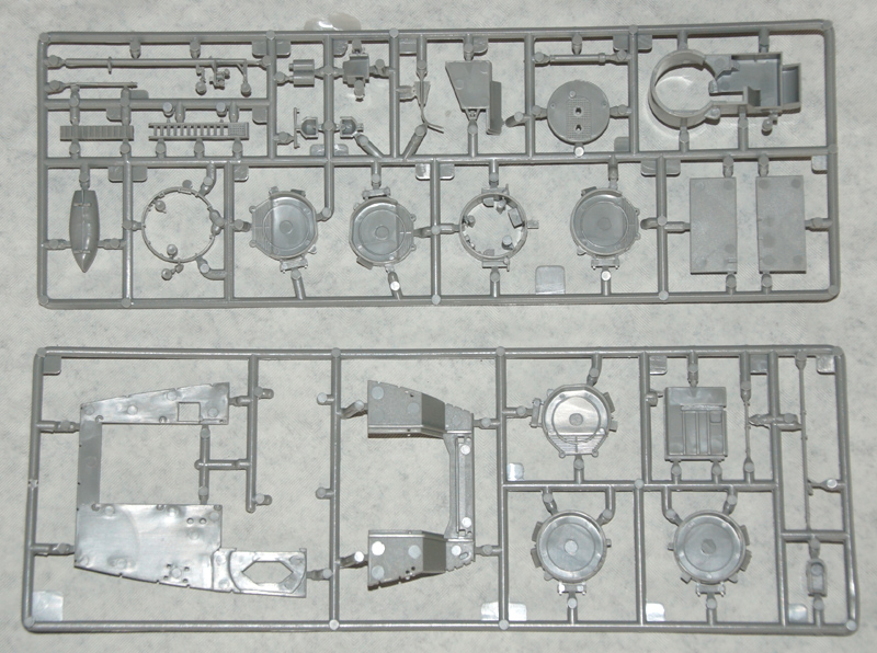 Als Beladung enthält der Bausatz (in dreifacher Ausfertigung) einen Spritzling, der je einen M4 Sherman, einen M8 Greyhound sowie einen 2,5t GMC enthält.