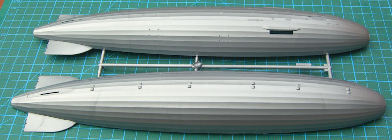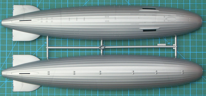 Bausatz: Dieser Luftschiffbausatz von Revell ist eine Wiederauflage eines Kits aus den 90er Jahren. Es gab auch noch das Schwesterschiff LZ 130. Die Bausatzform wurde in Korea erstellt und scheint sich auch noch dort zu befinden. Leider gibt es diesen Bausatz nur in Revells ehemaligen Schiffsmodellmaßstab 1/720. Eine Idee wäre doch mal ein Bausatz in 1/350...