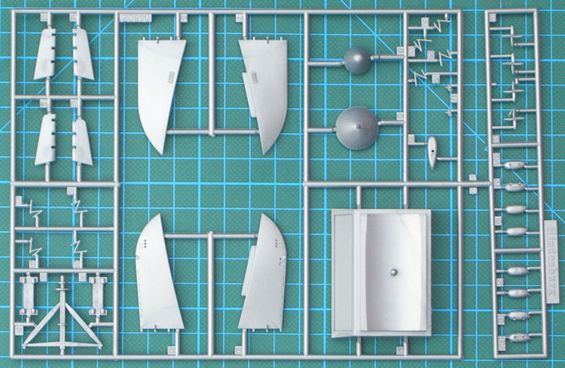 In der stabilen unpraktischen Schüttbox befinden sich gut verpackt zwei Spritzgussrahmen mit 39 Teilen, ein Rahmen mit drei Klarsichteilen, der Decalbogen und die Bauanleitung. Letztere hat einen sehr umfangreichen Vorbildteil, der leider in der Schrifttype viel zu klein gedruckt wurde. Weiterhin gibt es ein Info-Blatt des Zeppelin-Museums.