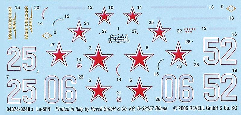 Vorbild: Als Vorbemerkung halte ich hier fest, dass ich gern die deutsche Schreibweise bevorzuge und nicht die englische Version russischer Namen. Daher auch Lawotschkin (spricht sich auch richtiger aus) statt Lavochkin, wie bei Revell. Die La-5FN war eine Weiterentwicklung der mit der LaGG-3 begonnenen Reihe von Jägern in Holzbauweise aus dem Hause Lawotschkin. Nachdem sich schnell zeigte, dass die LaGG-3 ein solides Flugzeug war, jedoch mit dem Klimow M-105 untermotorisiert war, wurde schon 1941 mit dem M-82/ASch-82 experimentiert. Als Ergebnis entstand die LaG-5, die dann zur La-5 und zur La-5F (mit ASch-82F) weiterentwickelt wurde.