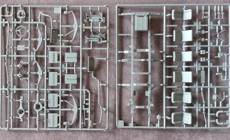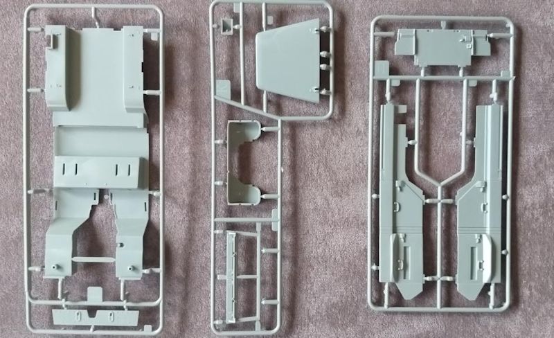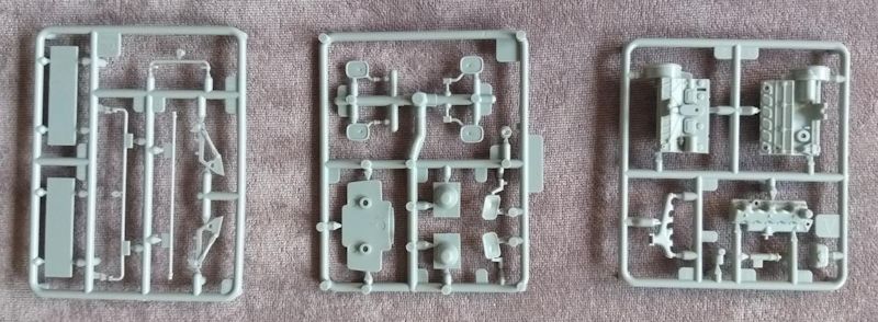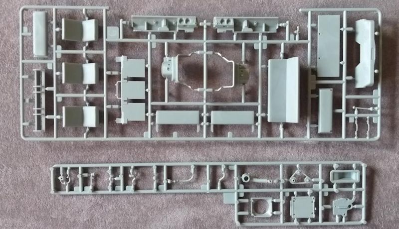 Die Karosserie ist wie beschrieben einteilig gehalten, was der Stabilität zugutekommt. Der Unterbodenbereich ist einteilig gehalten, gewinnt aber durch den zusätzlich anzubringenden Rahmen an Authentizität. Das Fahrgestell, Federn, Differentiale sind perfekt wiedergegeben. Unter der Motorhaube verbirgt sich eine klasse Miniatur des Motors mit all seinen Anbauteilen und dem Kühler.