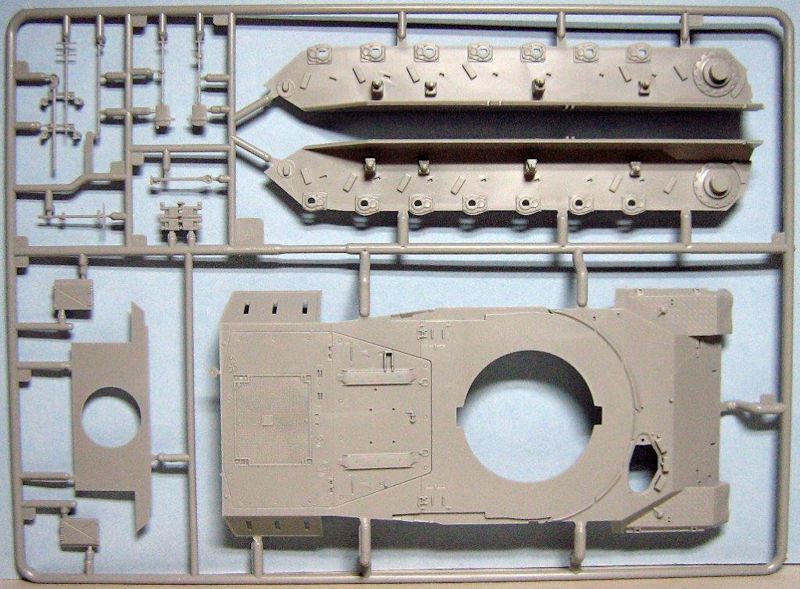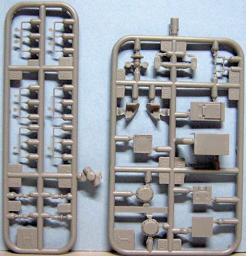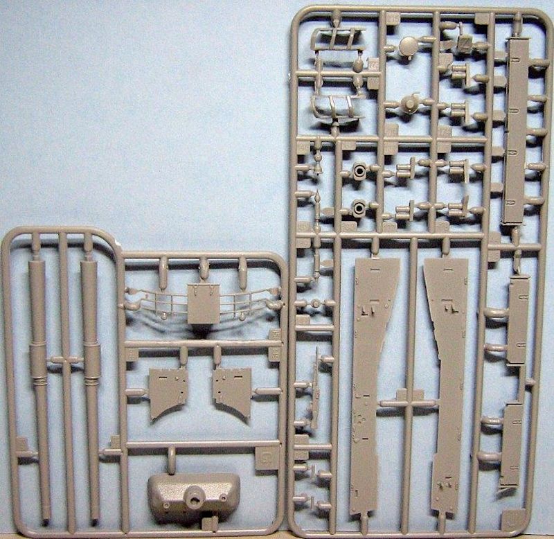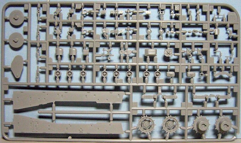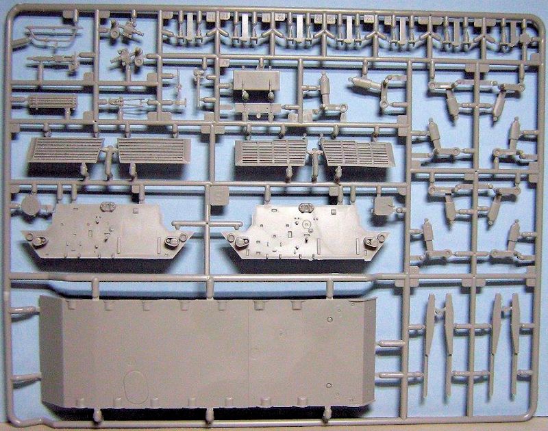 Geliefert wird der neue Bausatz in der bekannten Side-Open-Box, mit einer wie immer sehr guten Illustration und im neuen Revelldesign. Er beinhaltet ca.260 Bauteile die in mittelgrauen Plastik und schwarzen Vinyl abgespritzt sind. Ferner finden sich eine montagefreundliche Vinylkette, Stahldraht und die bekannten sehr guten Decals in der Box.