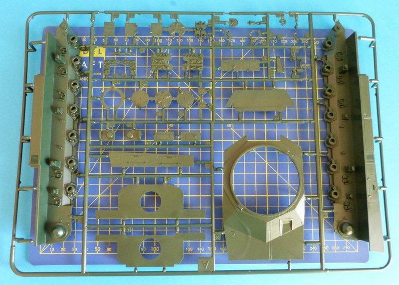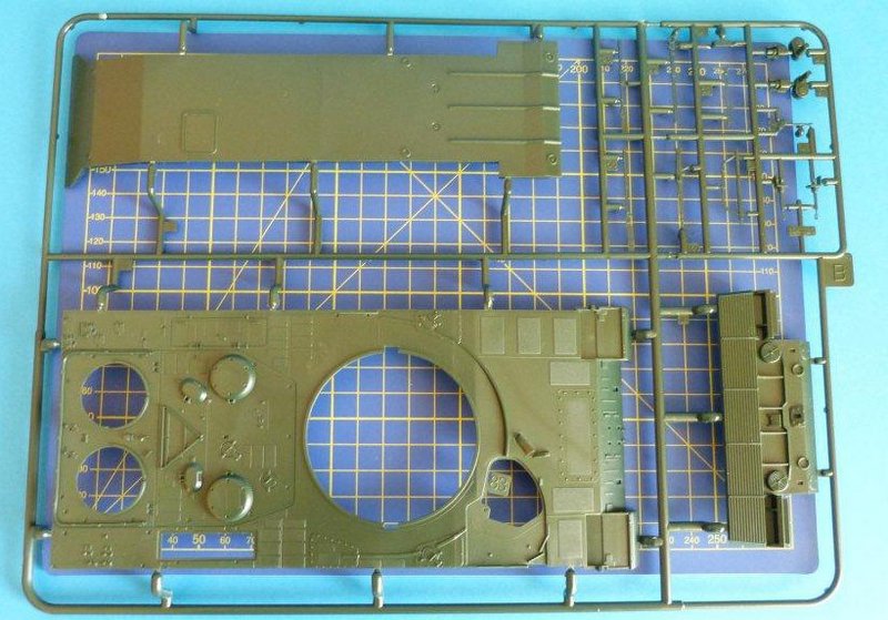 Alle Teile sind schön detailliert und viele filigrane Bauteile runden den guten ersten Eindruck des Bausatzes ab. Wie schon bei dem Bausatz des Leopard 2 A6 besteht die Fahrzeugwanne aus mehreren Teilen. Auch der Turm benötigt einige Teile, auch Seitenwände, bis die Baugruppe komplett ist.