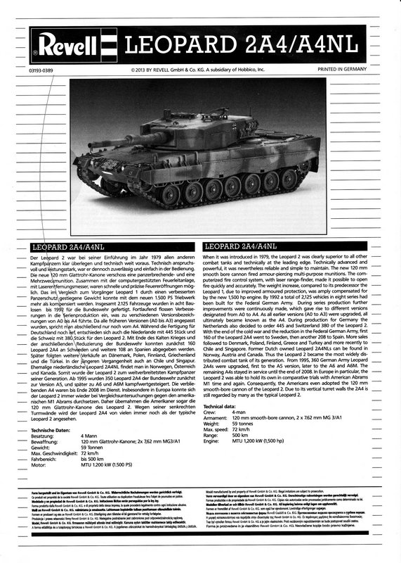 Fazit: Ein toller Leopard Bausatz und eine wahre Steigerung gegenüber dem Hobby Boss Bausatz oder der alten Italeri Variante, die im Moment nicht im Handel vertreten ist. Die Detaillierung ist super. Revell hat alle Unterschiede der einzelnen Versionen berücksichtigt. Der Preis von knapp 30 Euro geht voll in Ordnung.