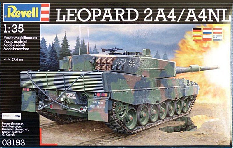 Bausatz: Nach dem guten Bausatz des Leopard 2 A6/A6 M beglückt uns Revell nun mit einem sehr guten Leopard 2 A4. Nach Öffnen der bei Revell typischen Schüttbox zieht man acht Dunkelgrüne Spritzrahmen aus dem Karton. 212 Einzelteile gilt es zu verbauen.